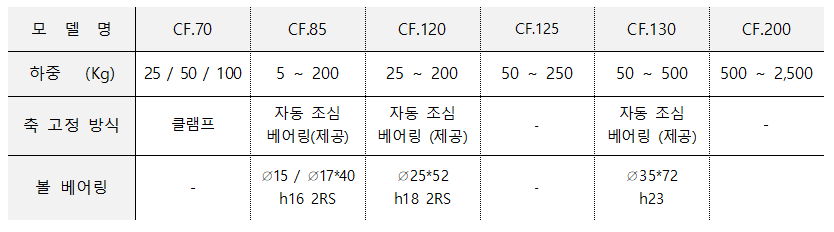 자동 조심 베어링 포함 / 라이브샤프트 타입, 얼라이먼트 설치 용이