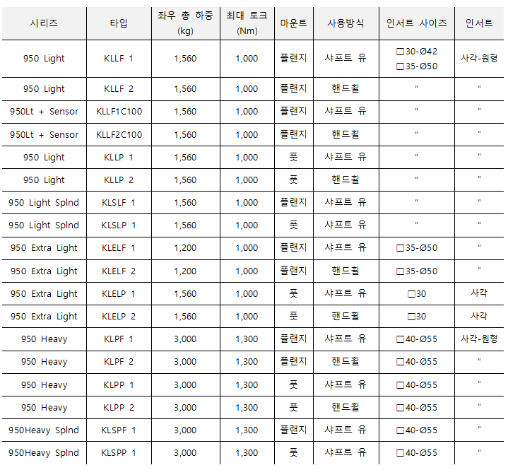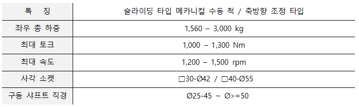 - 샤프트 유무 / 축 방향 조정 핸드휠 선택 가능