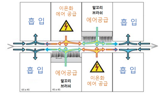 - 배기 흡입 : 상하 4개의 노즐, 상하 브러쉬 타입 정전기 제거바 2개
