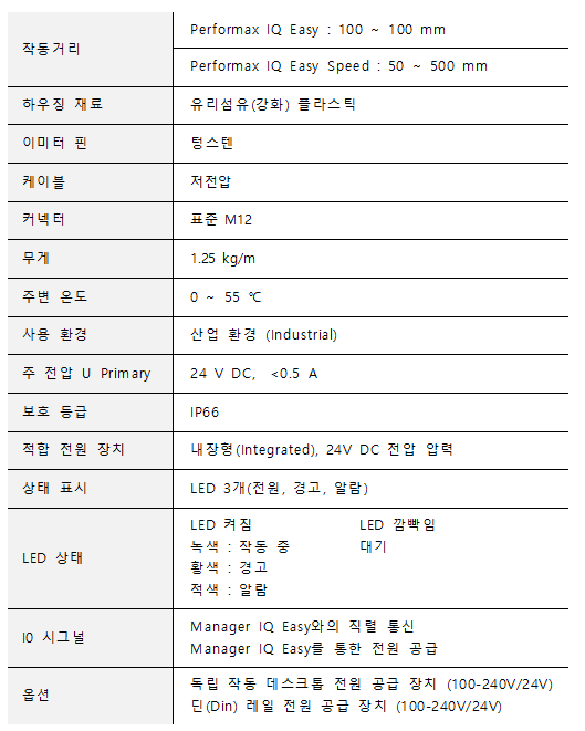 - 50 ~ 500 mm 작동 거리를 가진 고속 어플리케이션 용