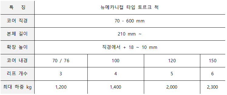 - 에어/스프링 확장 및 토르크 확장 혼합 방식으로 완벽한 코어 그립 제공