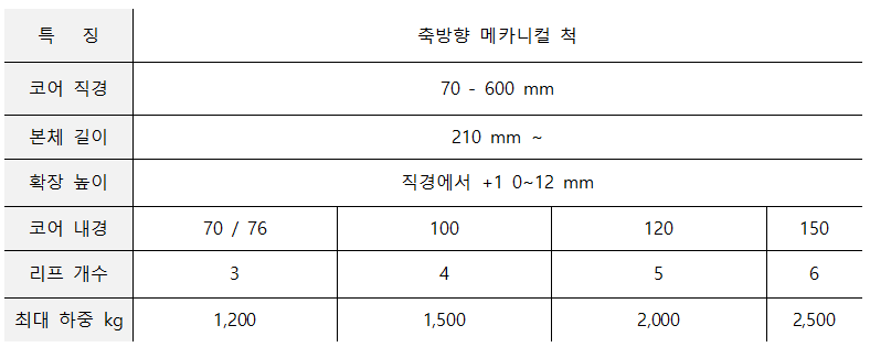 - 다양한 코어 사이즈를 위한 어댑터 사용 가능